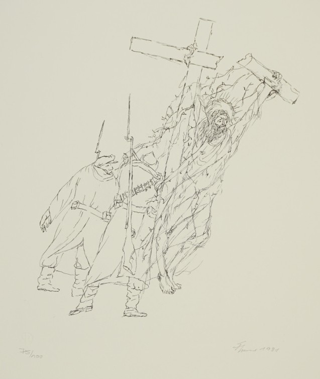 Galerie Bl.6 zu Alexander Blok (Die Zwölf) Studie IVMappe: Cremer F. "Der Gekreuzigte" Verlags-Anstalt UnionLithografie, 28,0x25,0 53,5x39,5 cm, 75/100 1981Cremer Fritz