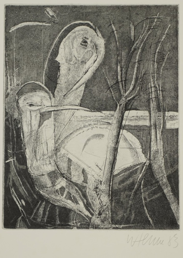 Galerie o.T.Mappe: Henne W. / Volmer S. "Tag und Nacht" Alfred MombertAquatinta, 23,5x18,3 49,0x36,0 cm, 10/30 1983Henne Wolfgang