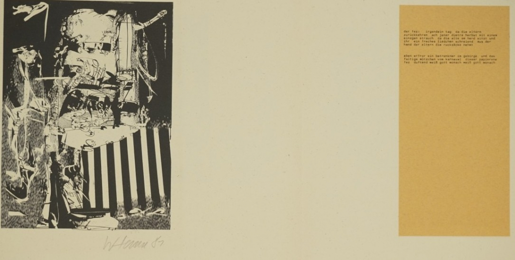 Galerie Bl.7 o.T.Mappe: Henne W. "sieben lithographien nach gedichten"Lithografie, 21,2x15,5 52,2x70,0 cm, 8/50 1981Henne Wolfgang
