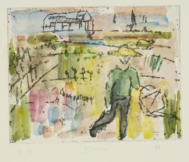 Galerie Der böse Herr Hoffmann bei der ArbeitMappe: "Blätter aus einer Gärtnerei"aquarellierte Radierung, 14,7x19,0 39,5x53,5 cm, IV/X 1991Nehmzow Olaf