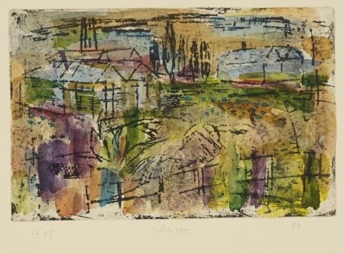 Galerie TreibhäuserMappe: "Blätter aus einer Gärtnerei"aquarellierte Radierung, 16,7x24,4 39,5x53,5 cm, IV/X 1991Nehmzow Olaf