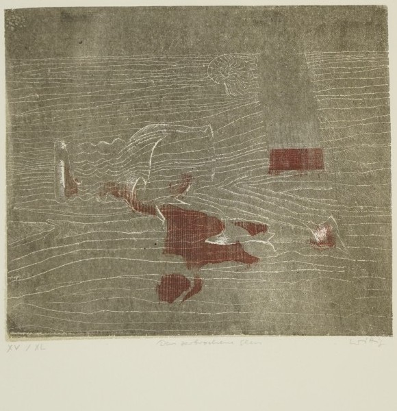 Galerie Das zerbrochene GlasMappe: Grafik-Presse "eikon" Wittig W. "Blatt Würfel Knospe"Farbholzriss, 28,0x32,5 61,0x49,0 cm, XV/XL 1977Wittig Werner