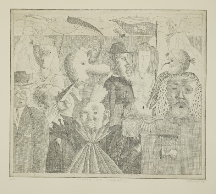 Galerie Schau und BloßstellungKaltnadel auf Lithopapier, 28,0x32,3 39,5x41,0 cm, 2/10 1975Heinze Frieder