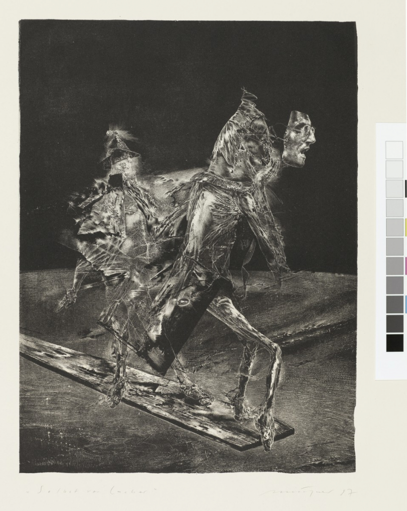 Galerie Selbst vor LacherMappe: Galerie Stübler "Eine Arbeitsbegegnung bei Kätelhön"Schablithografie, 38,2x28,5 65,0x50,5 cm, IV/XIII 1987Münzner Rolf