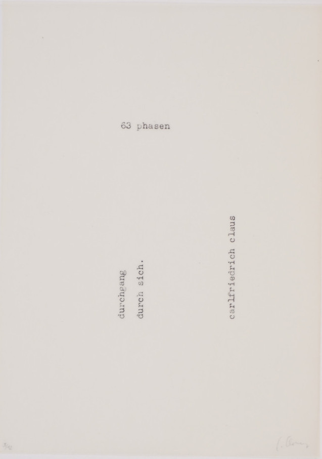 Galerie TitelblattMappe: Clara Mosch "63 Phasen durchgang durch sich"Siebdruck, 21,0x15,0 cm, 3/12 1991Claus Carlfriedrich