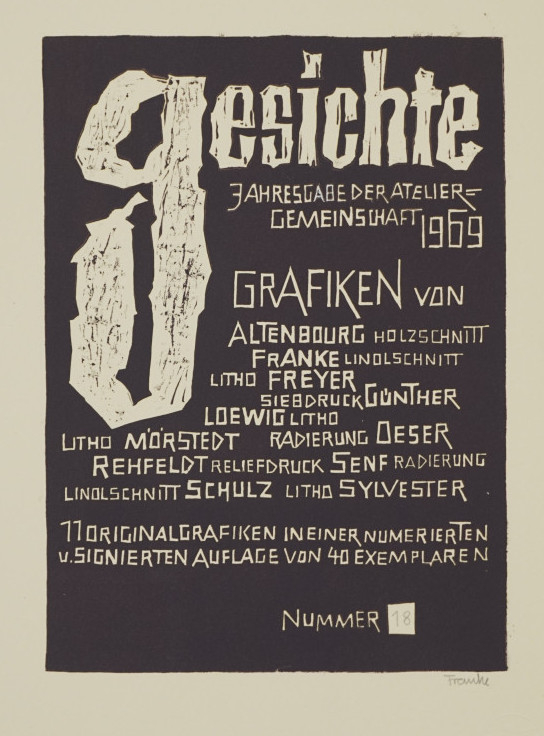 Galerie TitelblattMappe: Erfurter Ateliergemeinschaft 1969 "gesichte"Linolschnitt, 42,0x30,0 cm, 18/40 1969Franke Rudolf