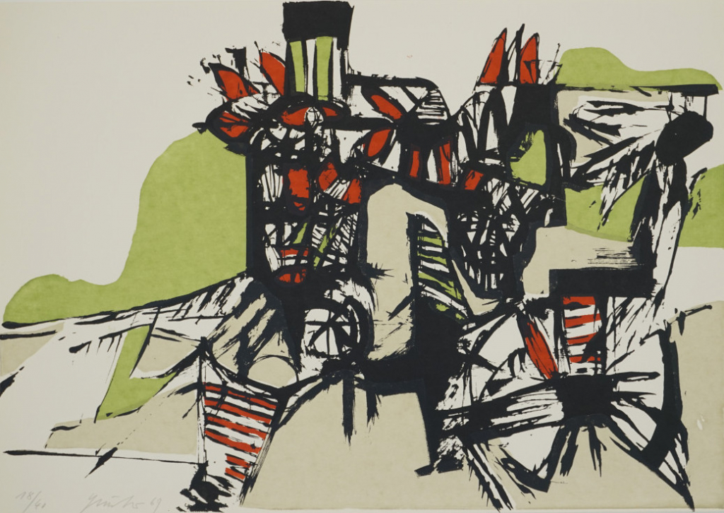 Galerie o.T.Mappe: Erfurter Ateliergemeinschaft 1969 "gesichte"Farbsiebdruck, 29,6x42,0 cm, 18/40 1969Günther Heinz