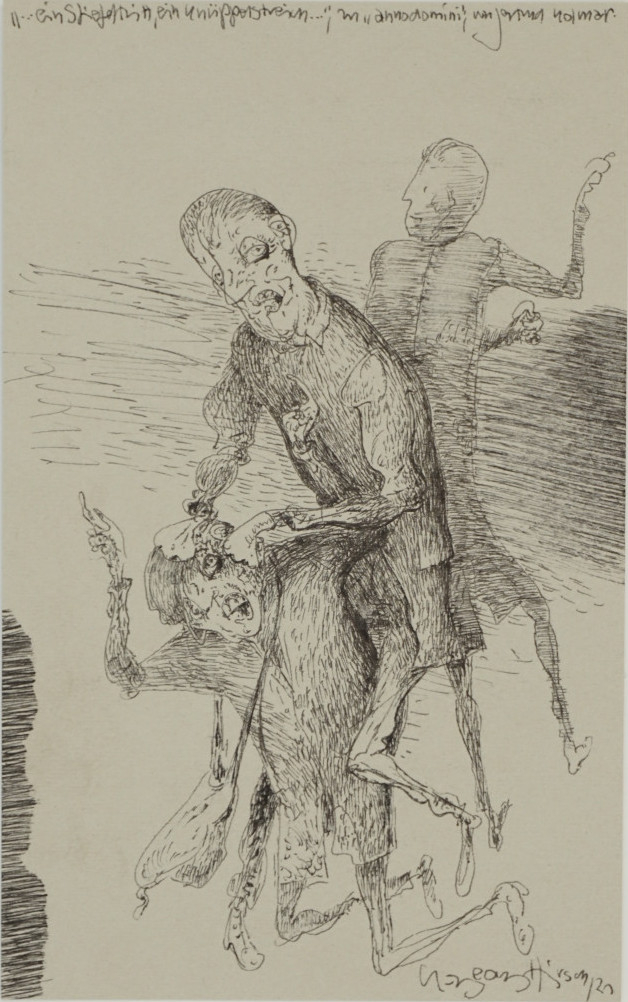 Galerie "..ein Stiefeltritt, ein Knüppelstreich" zu "annodomini" von Gertrud KolmarFeder in Tusche, 22,5x14,0 cm, 2021Hirsch Karl-Georg