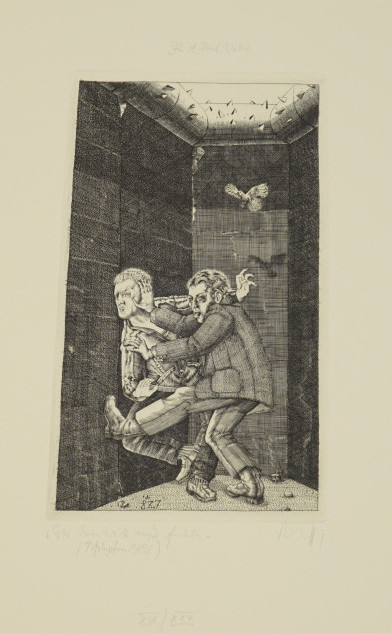 Galerie Wer nicht hören will muss fühlen - für Anton Paul WeberMappe: Fliesenwerk Boizenburg "Ein Lehrer und seine Schüler"Kupferstich, 23,5x14,0 53,0x39,5 cm, 19/25 1987Zettl Baldwin