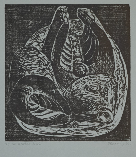 Galerie Der geteilte FischMappe: 4. Leipziger Grafikmappe Stilleben Holzschnitt, 25,7x23,8 48,3x34,0 cm, 11/50 1977Flemming Petra