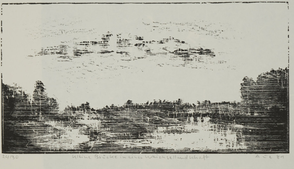 Galerie WeichsellandschaftMappe: M HolzschnitteHolzschnitt, 16,2x30,5 34,0x48,0 cm, 24/30 1981Aue Jochen