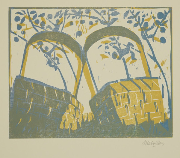 Galerie Die KörbeMappe: Berliner Grafikpresse 13.Druck "Hänschen im Blaubeerenwald"Farbholzschnitt, 24,0x30,2 39,0x53,8 cm, 3/15 2009Metzkes Harald