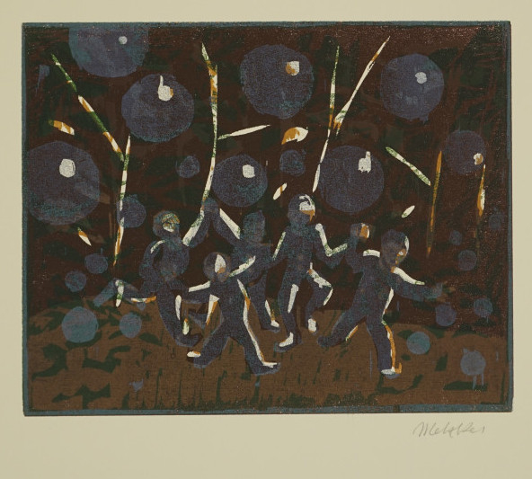 Galerie BlaubeerenbubenMappe: Berliner Grafikpresse 13.Druck "Hänschen im Blaubeerenwald"Farbholzschnitt, 24,0x30,0 39,0x59,5 cm, 3/15 2009Metzkes Harald