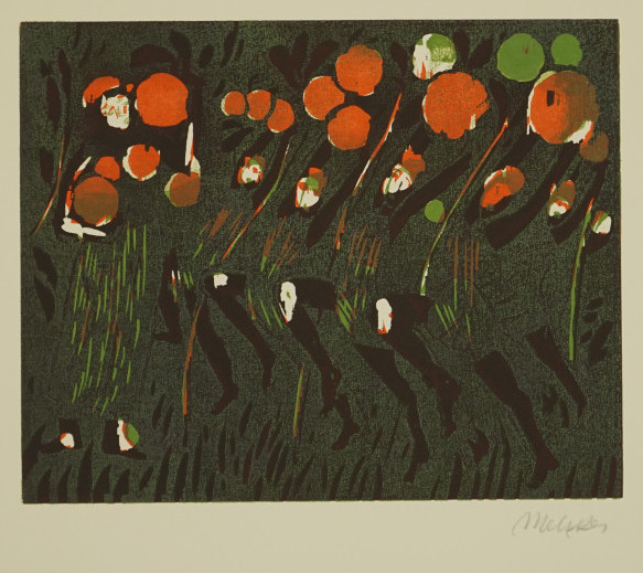 Galerie PreiselbeermädchenMappe: Berliner Grafikpresse 13.Druck "Hänschen im Blaubeerenwald"Farbholzschnitt, 39,0x53,8 cm, 3/15 2009Metzkes Harald