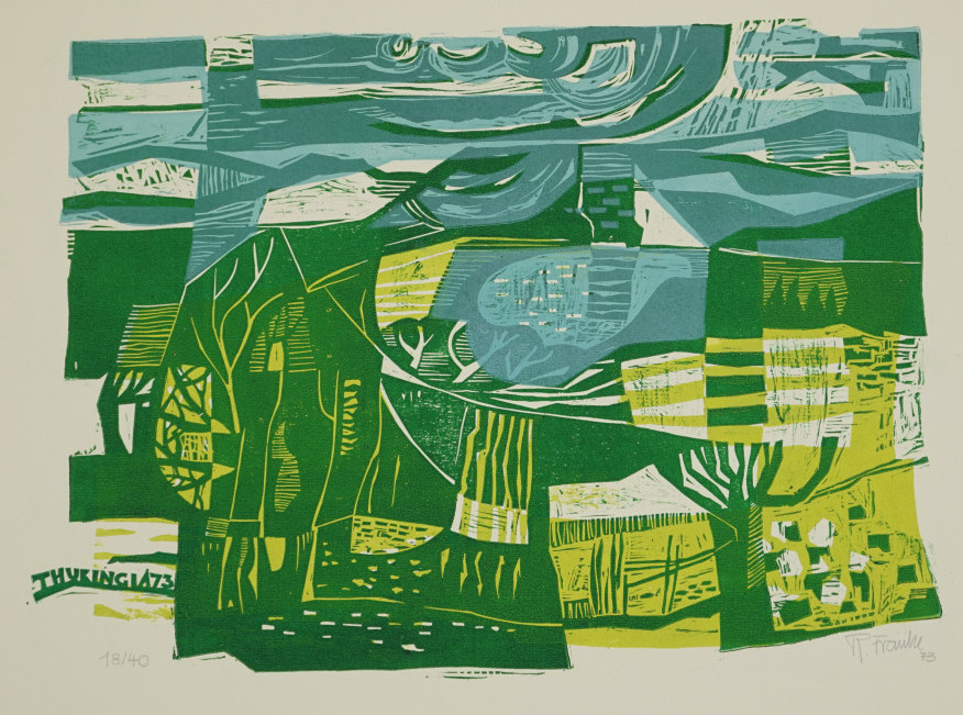 Galerie Thuringia 73Mappe: Erfurter Ateliergemeinschaft 1973/74 "Thuringia"Farbholzschnitt, 36,0x48,0 cm, 18/40 1973Franke Rudolf