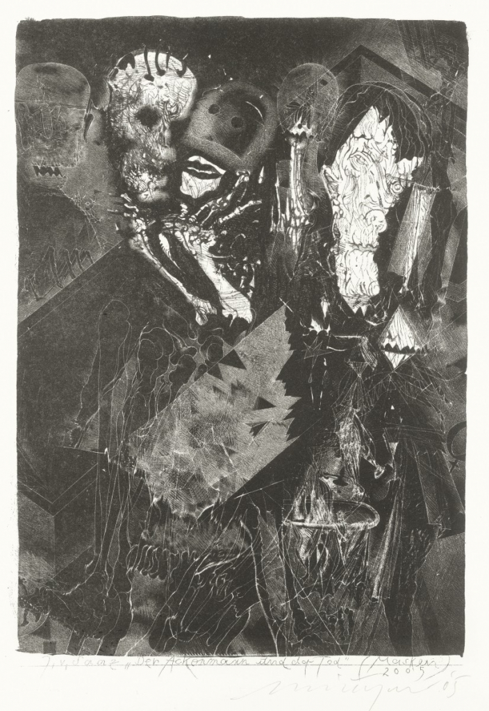 Galerie zu Ackermann und der Tod "Masken" III Bl.13Schablithografie, 33,0x22,0 54,0x40,0 cm, EA 2005Münzner Rolf