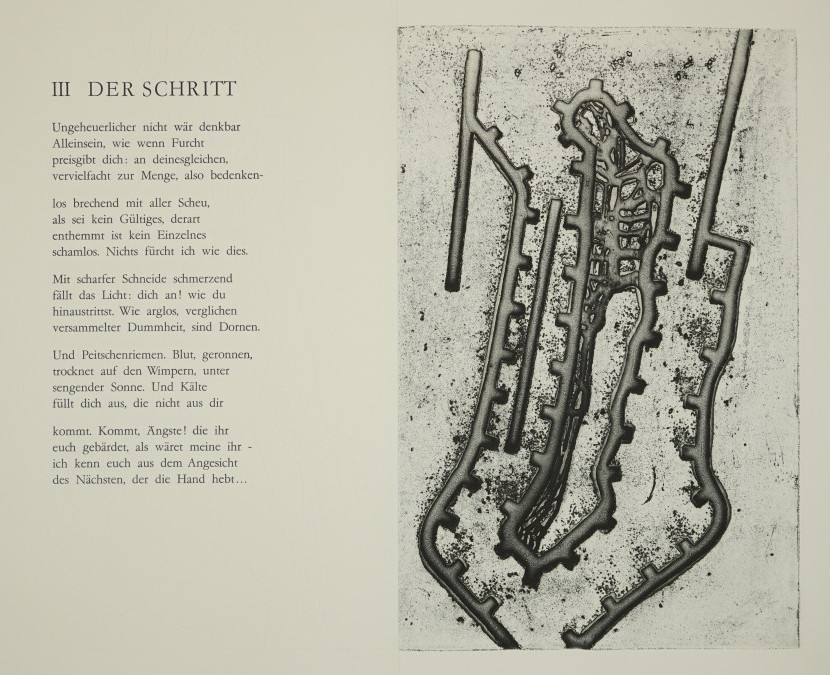 Galerie Bl.4 o.T. Der SchrittMappe: burgart-presse M. Morgner "Ecce Homo"Radierung/Buchdruck, 57,7x81,0 cm, 28/70 1994Morgner Michael