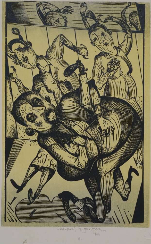 Galerie Bl.5 RaufereiMappe: Hirsch K.-G. Edition Zwi 2022 "Absprung"Farbholzschnitt, 30,5x20,3 34,0x24,0 cm, 2/15 2021Hirsch Karl-Georg