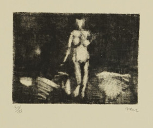 Galerie Stehende vor dunklem HintergrundMappe: Vent H. "Akte"Mezzotinto, 9,0x12,5 35,0x39,0 cm, 13/35 1980/1991Vent Hans
