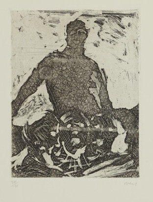 Galerie Figur im GegenlichtMappe: Vent. H. "Szenen"Ätzung auf bemalter Zinkplatte, 16,0x12,3 35,0x39,0 cm, 11/35 1977/1991Vent Hans