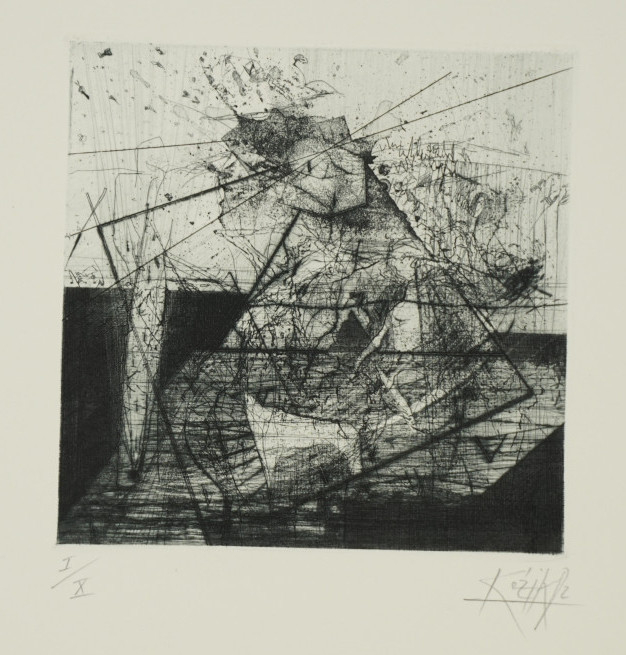 Galerie Metamorphosen der Fünftracht - 4. EingriffMappe: Clara Mosch "CM 4"Radierung, 15,5x15,5 22,0x22,5 cm, I/X 1982Claus/Morgner/Ranft/Ranft-Schinke/Kozik