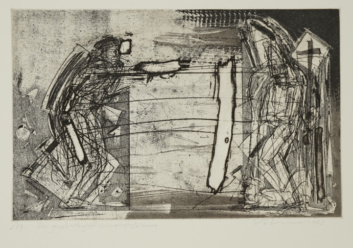 Galerie Der große Angriff bringt KlärungMappe: Bezirkskunstzentrum Karl-Marx-Stadt "Zur Martin Luther Ehrung"Radierung, II 6/7 1983Volmer Steffen