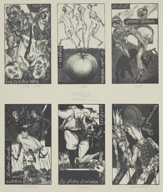 Galerie Bl.1Mappe: Hirsch K.-G. Editition Zwi 2002-03 Nr.6 "Grandville"Acrylstich, 27,0x23,0 32,0x27,0 cm, 2002-03Hirsch Karl-Georg