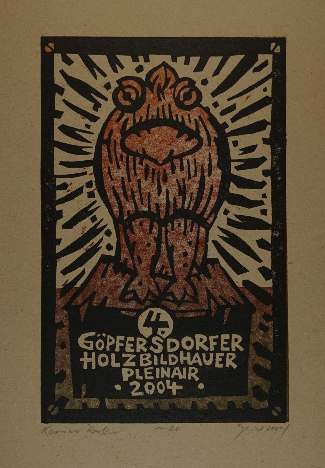 Galerie Karins Rabe Mappe: 4.HolzbildhauerpleinairHolzschnitt, 26,5x17,0 41,5x31,0 cm, 1-20 2004Gentsch Karin