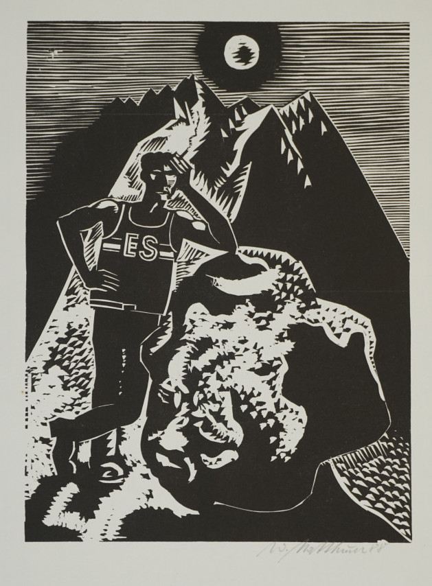 Galerie o.T. (Stärker als sein Fels)Linolschnitt, 30,0x22,0 41,0x29,0 cm, 118/230 1988Mattheuer Wolfgang
