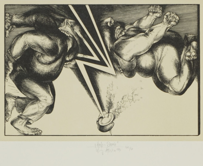 Galerie Haß-StreitMappe: Grafik-Presse "eikon" Hirsch K.-G. "Feuer"Holzstich, 11,8x17,2 48,0x34,0 cm, 41/50 1979Hirsch Karl-Georg