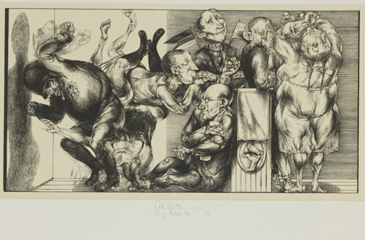 Galerie Die SiebenMappe: Grafik-Presse "eikon" Hirsch K.-G. "Feuer"Holzstich, 11,7x21,8 48,0x34,0 cm, 41/50 1979Hirsch Karl-Georg