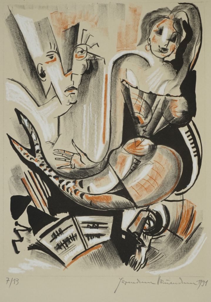 Galerie o.T. Bl.4Mappe: Naumann Hermann "Der Korsettenfritz"Farblithografie mit Kreide coloriert, 34,0x25,2 53,5x39,8 cm, 7/13 1991Naumann Hermann