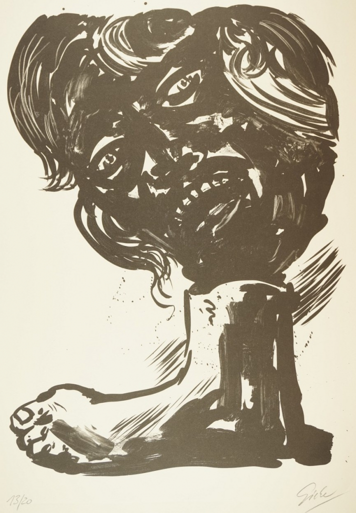 Galerie Bl.3 o.T. Doppelbl. m. Text gefaltetMappe: Giebe H. "Pulvis et Umbra"Lithografie, 46,0x33,0 53,5x79,5 cm, 13/20 1993Giebe Hubertus
