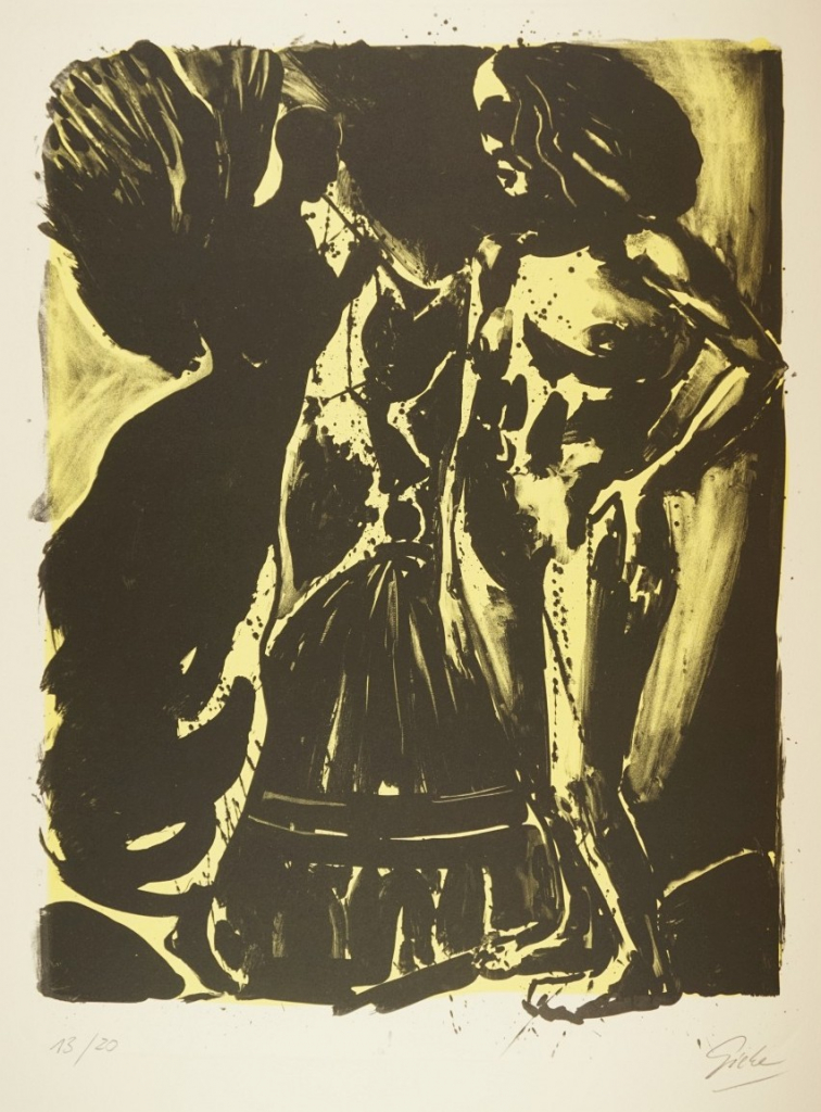 Galerie Bl.7 o.T. Doppelbl. m. Text gefaltetMappe: Giebe H. "Pulvis et Umbra"Farblithografie, 38,0x28,5 53,5x79,5 cm, 13/20 1993Giebe Hubertus