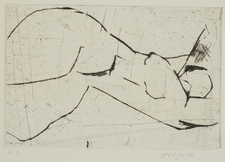 Galerie o.T. (Liegender Akt)Mappe: BildhauergrafikRadierung, 14,0x21,3 20,8x29,4 cm, EA 1989Stötzer Werner