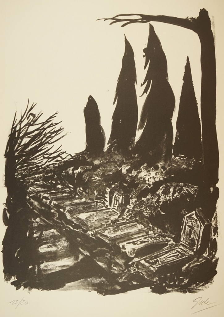 Galerie Bl.10 o.T. Doppelbl. m. Text gefaltetMappe: Giebe H. "Pulvis et Umbra"Farblithografie, 41,0x30,0 53,5x79,5 cm, 13/20 1993Giebe Hubertus