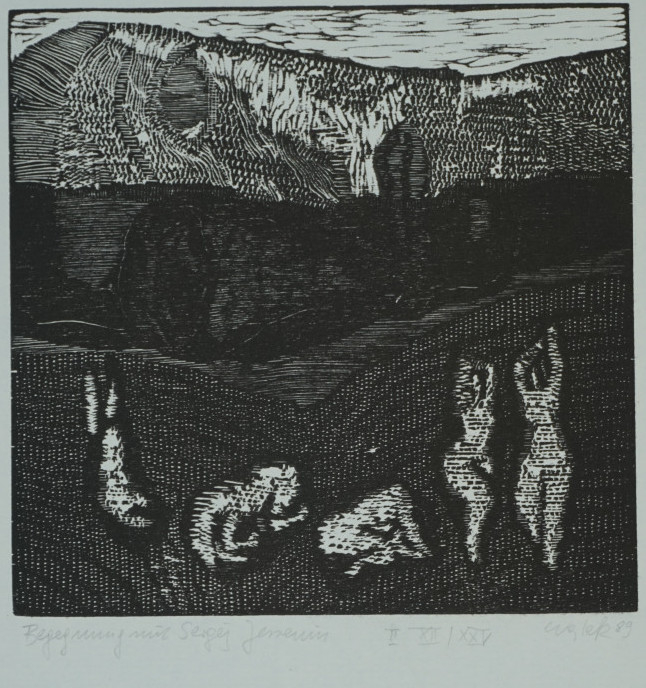 Galerie Begegnung mit Sergej JesseninHolzschnitt, 20,7x20,7 37,3x36,0 cm, II XII/XXV 1989Neumann Walek