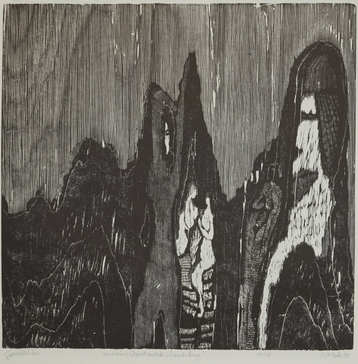 Galerie Grenzlinien zu Heinz Czechowski "Landsberg"Holzschnitt, 39,2x39,7 50,0x60,0 cm, 15/18 1985Neumann Walek