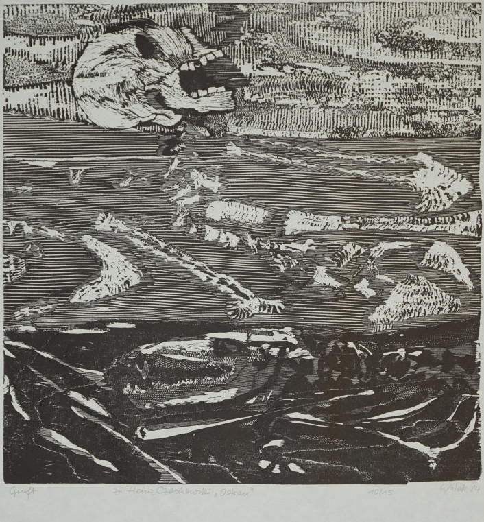 Galerie Gruft zu Heinz Czechowski "Ostrau"Holzschnitt, 39,5x39,0 60,0x50,0 cm, 10/15 1984Neumann Walek