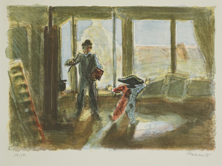 Galerie Der kleine Harlekin und ichMappe: Berliner Grafikpresse "Selbstbildnisse"Lithografie, 27,0x38,4 3,9,5x54,0 cm, 19/100 1985Metzkes Harald