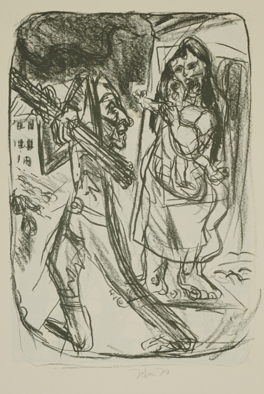 Galerie Marie mit Kind; der Tambourmajor zieht vorbeiMappe: John J. "Woyzeck"Zinklithografie, 29,5x20,5 42,0x29,8 cm, 1-30 1970John Joachim