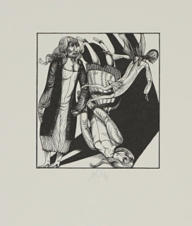 Galerie Hannswurst die geplagte KammerjungfrauMappe: Hirsch K.-G. "Hannswurstische Träume"Holzstich, 9,0x8,3 48,0x34,0 cm, EA /20 1973Hirsch Karl-Georg