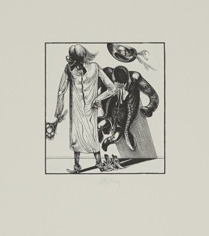 Galerie Hannßwurst der Brautführer auf der Hochzeit zu LimmeldorfMappe: Hirsch K.-G. "Hannswurstische Träume"Holzstich, 9,0x8,3 48,0x34,0 cm, EA /20 1973Hirsch Karl-Georg