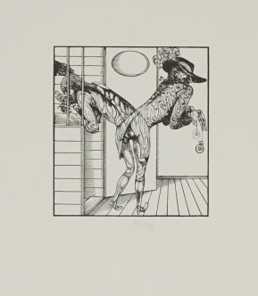 Galerie Hannßwurst der schuldige und unschuldige MarktdiebMappe: Hirsch K.-G. "Hannswurstische Träume"Holzstich, 9,0x8,3 48,0x34,0 cm, EA /20 1973Hirsch Karl-Georg