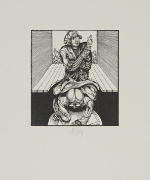 Galerie Hannßwurst der dumme BeamteMappe: Hirsch K.-G. "Hannswurstische Träume"Holzstich, 9,0x8,3 48,0x34,0 cm, EA /20 1973Hirsch Karl-Georg