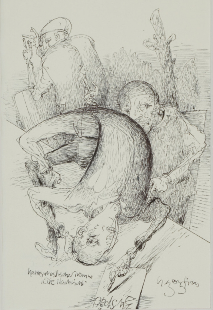 Galerie Die Nachricht - zu spätMappe: Hirsch K.-G. "Hannswurstische Träume"Feder in Tusche, 22,0x15,0 cm, 1973Hirsch Karl-Georg