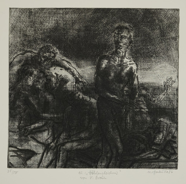 Galerie Zu Volker Braun, HöhlengleichnisMappe: Mitteldeutscher Verlag "Der schmerzhafte und wunderbare aufrechte Gang"Radierung, 29,5x31,0 39,5x55,5 cm, 35/50 1986Hachulla Ulrich