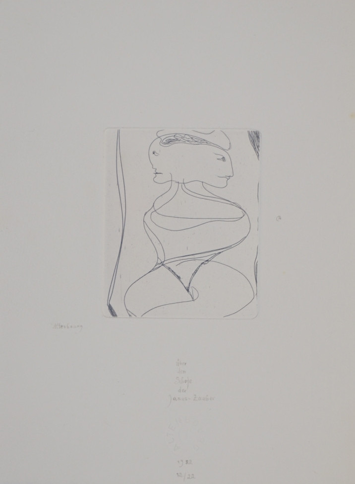 Galerie Über dem Schoße der JanuszauberKaltnadel, 10,2x8,5 27,0x20,0 cm, 12/22 1982Altenbourg Gerhard