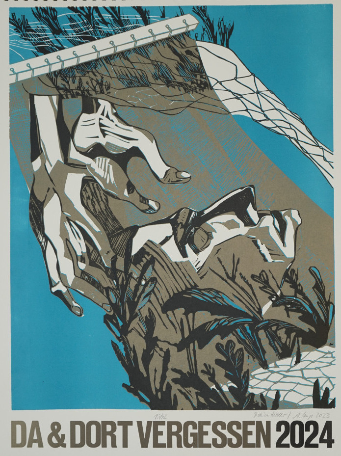 Galerie Das Da und Dort vergessen (Titelblatt)Farblinolschnitt, 52,2x42,0 60,0x47,0 cm, 15/42 2023Haller Bettina/Lange Andrea