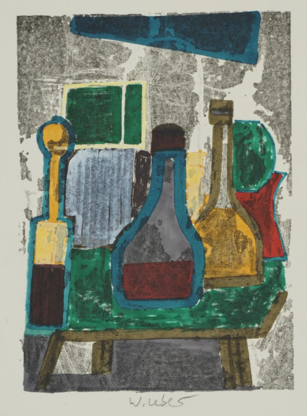 Galerie Kleines Stillleben mit FlaschenLithografie überzeichnet mit Acryl, 18,0x13,0 24,0x18,0 cm, 2016Leber Wolfgang